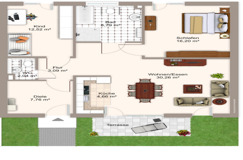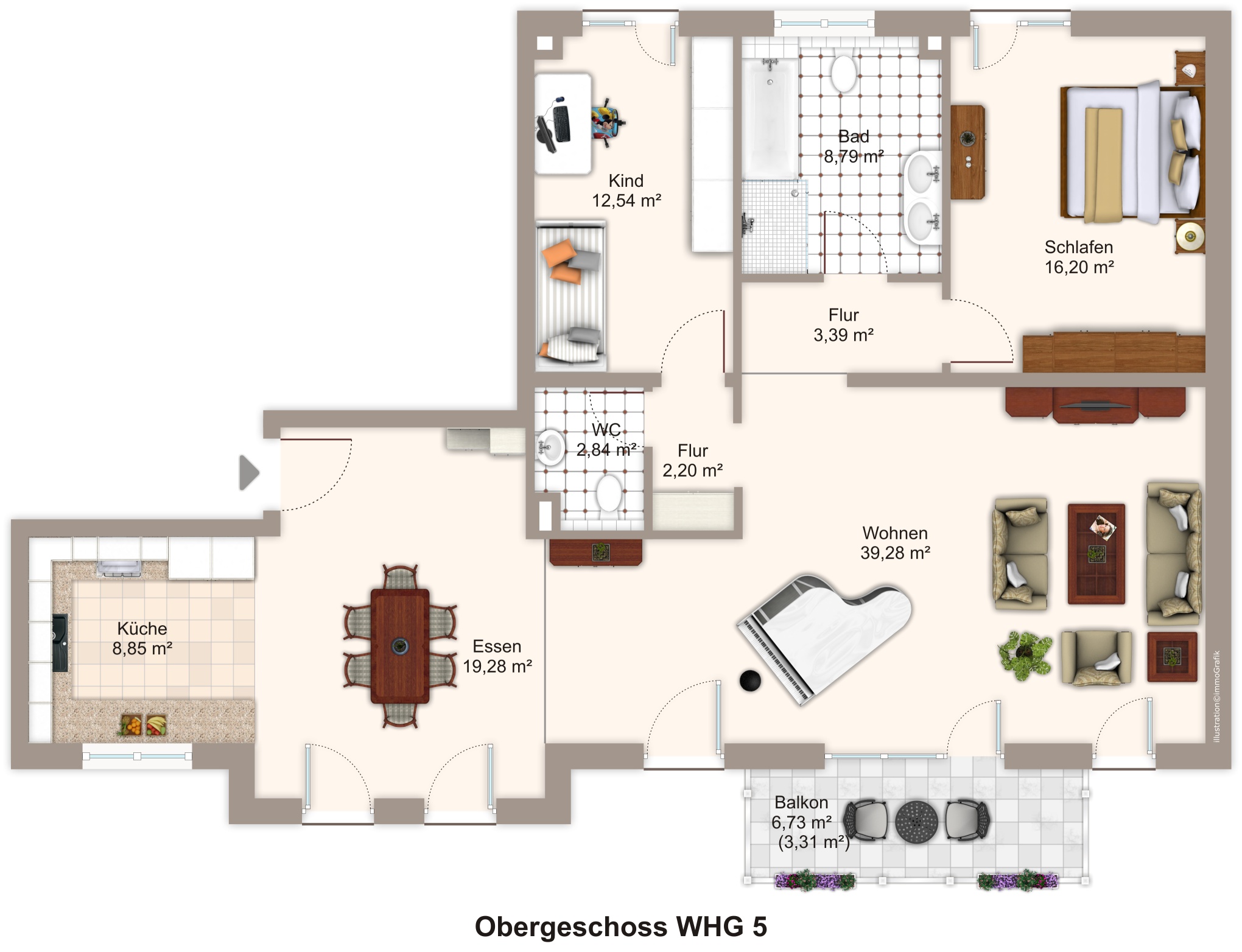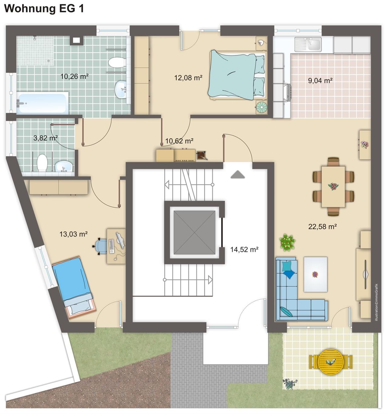 除了开放式的生活/厨房/用餐区,公寓还包括一到两间卧室,一个日光浴室,一个客用卫生间和一个阳台。整个公寓都是无障碍的,您可以从每层楼的地下停车场到达。